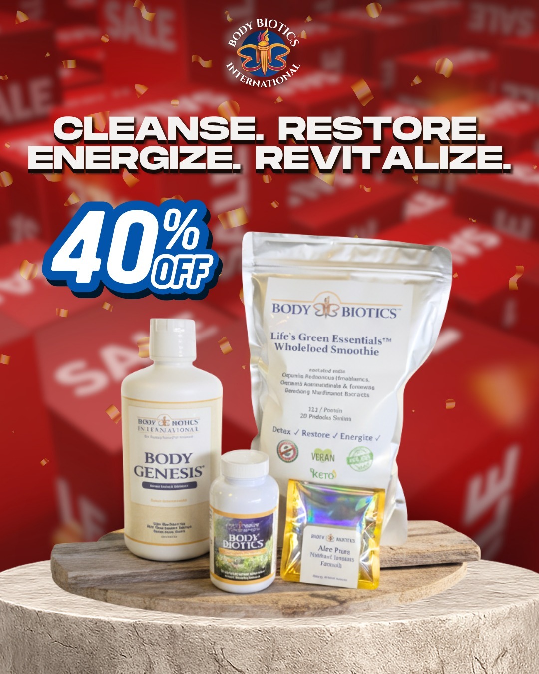 This is your great opportunity to try 4 of our Core Essential products, formulated for whole-body wellness. Begin your routine with a 2-Day Aloe Pure Cleanse to prepare your body for Body Biotics SBO Probiotics.